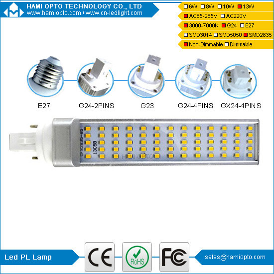 2018 Hot Sale Energy Saving E27/G24/G23 Base 13W Led PL Light SMD2835,Smd Plc Led Lamp For Cfl Replacement CE Images |
