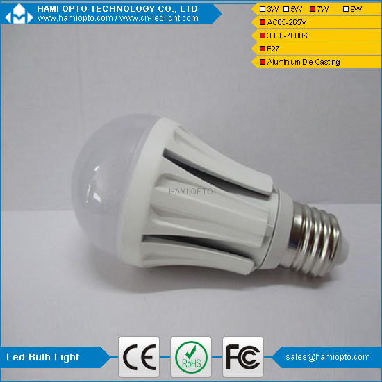 High Lumens B22/E27 7W led bulb lighting with Die casting aluminum Images |